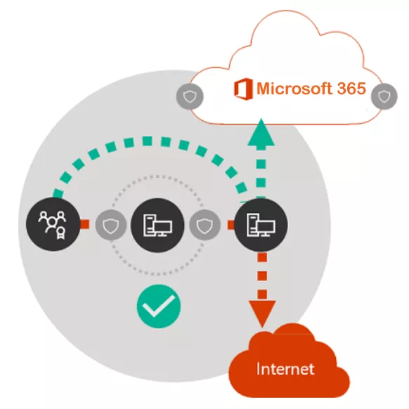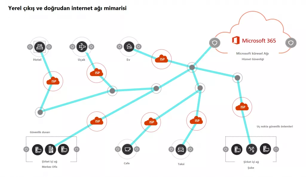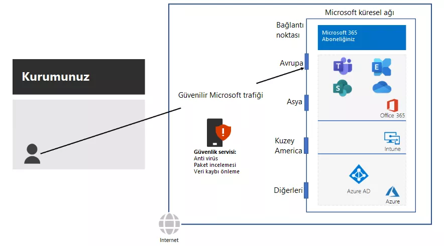 Ayrıca ağlar, Proxy’ ler, SSL denetimi, paket denetimi ve veri kaybı önleme sistemleri gibi teknolojileri kullanan internet trafiği için genellikle güvenliğe sahiptir. Bu teknolojiler, genel internet istekleri için güvenlik riskini azaltır ancak Microsoft 365 uç noktalarına uygulandığında performansı, ölçeklenebilirliği ve kaliteyi düşürebilir.