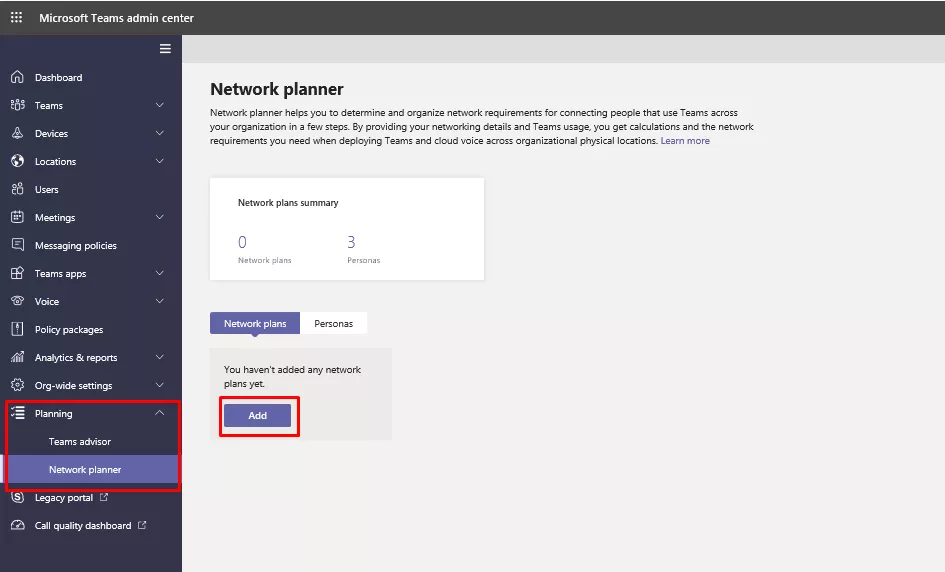 Ağ planlayıcısını kullanmak için Global Yönetici, Teams Servis Yöneticisi veya Teams İletişim Yöneticisi olmanız gerekir.