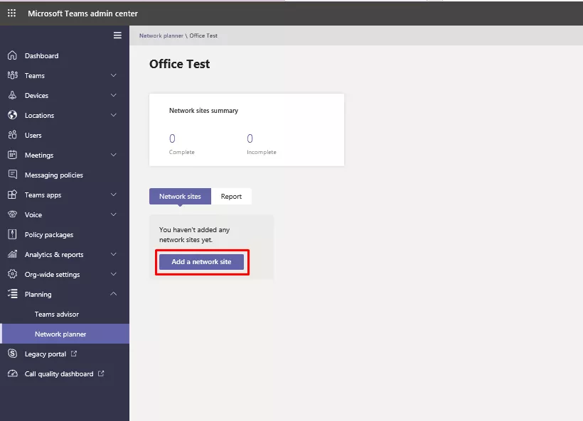Ağ Planlayıcı, kuruluşunuzu Teams’e bağlamak için ağ gereksinimlerini belirlemenize ve düzenlemenize yardımcı olur. Bireysel siteler dâhil olmak üzere tüm ağınızın ayrıntılarını, WAN ve internet çıkış ayrıntılarını, personel dağılımı ve kullanıcı sayılarıyla birlikte eklersiniz ve Ağ Planlayıcı, Teams’i kullanmak için ağ gereksinimlerini hesaplar.